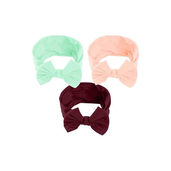 Embalagem com um trio de faixas de cabeça em cores diferentes, o que facilita a criação de todo o tipo de visuais. O desenho destas faixas de cabeça tem uma forma de laço com uma estrutura rígida a ser colocada sobre o cabelo. Este produto é adequado para manter e fixar o cabelo das crianças no lugar.