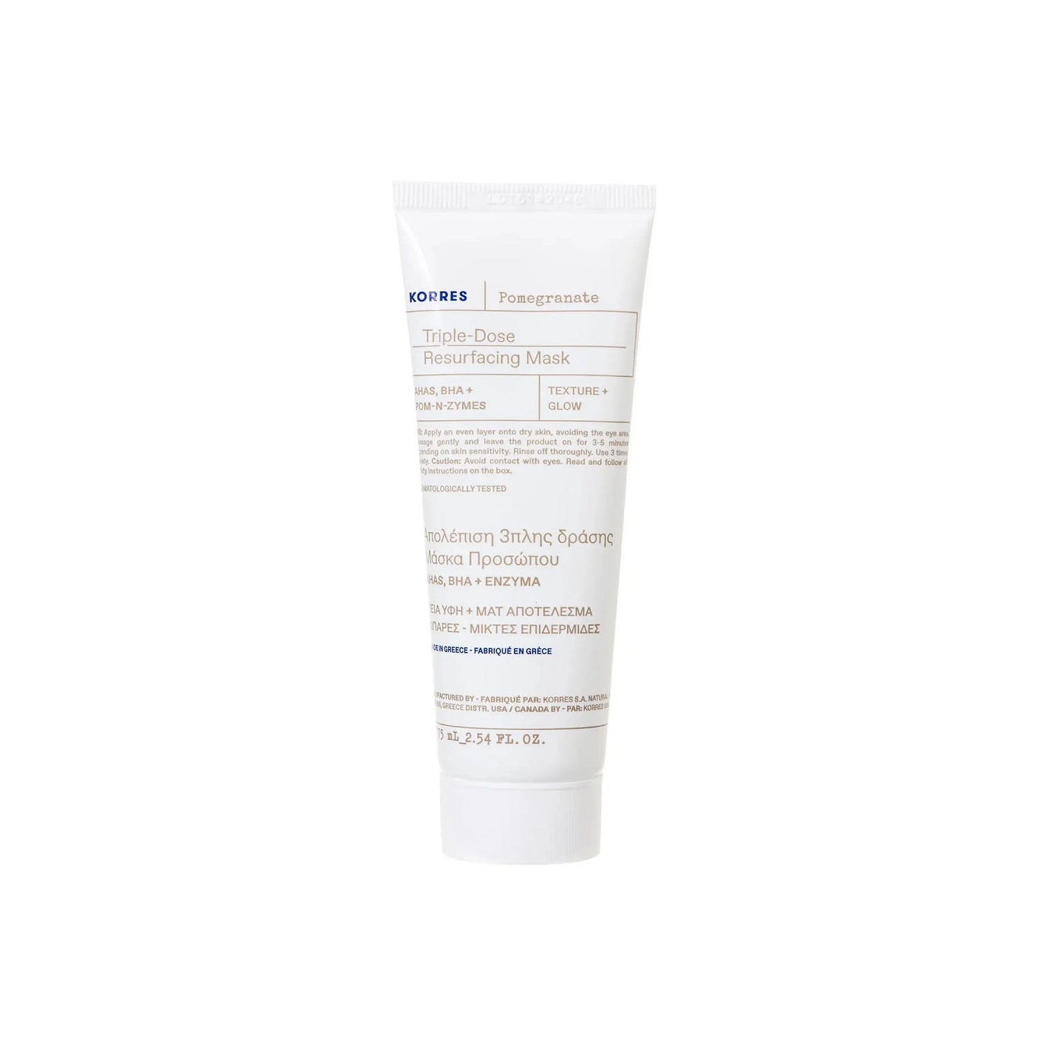 Korres Máscara de Renovação Tripla com Romã 75ml é uma máscara facial projetada para alcançar uma pele mais suave, uniforme e livre de brilhos. Sua fórmula inovadora de tripla ação esfoliante atua diretamente no rosto, minimizando poros e melhorando a textura da pele.
