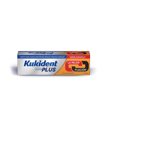 Kukident Pro Dupla Ação 60g é um creme de fixação para próteses dentárias. Sem açúcar.