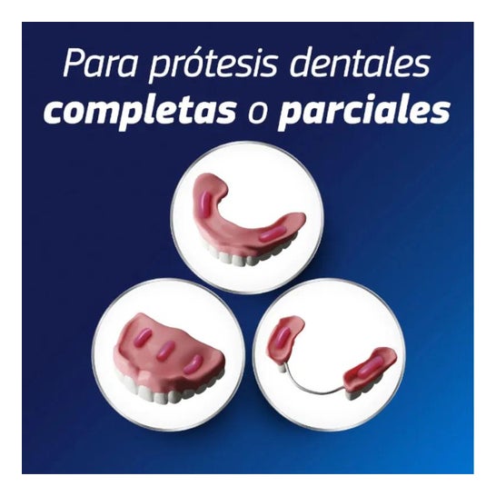 Adesivo fixador para dentaduras de sabor neutro. Ajuda a fixar a prótese e a mantê-la em posição, evitando irritações e irritações.