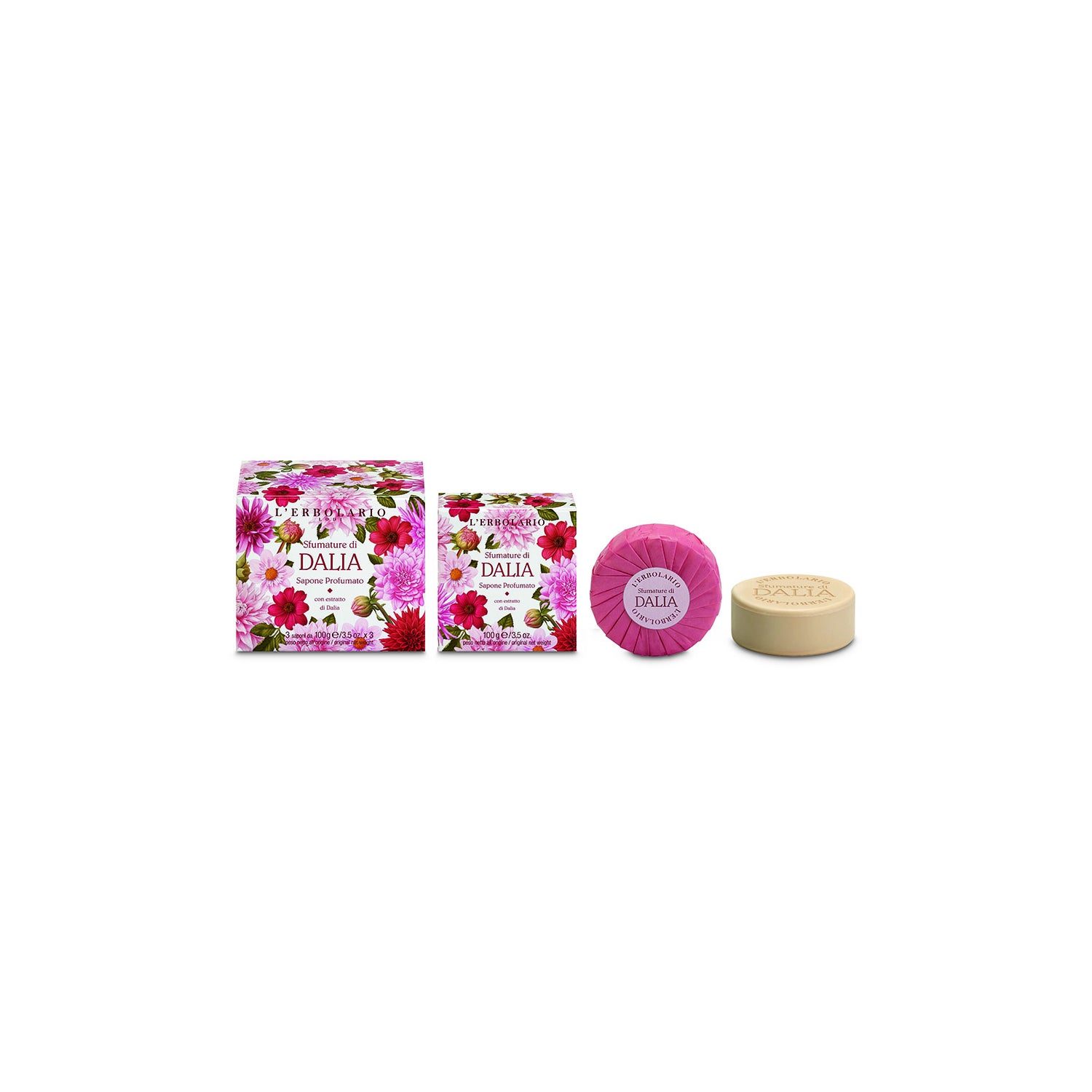 Sabão sólido perfumado com extracto de flor de dália hidratante. O hidrolisado desta planta caracteriza-se por ser suave para a pele e melhora significativamente a humidade da área. É especificamente desenvolvido para limpar a pele das mãos e do corpo, deixando-a aveludada, suave e macia.
