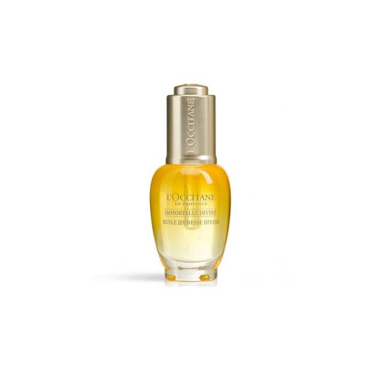 Immortelle divine youth oil 30ml. Enriquecido com extracto orgânico Immortelle da Córsega, este óleo facial multiusos ajuda a combater os sinais visíveis de envelhecimento: firmeza, rugas, uniformidade da tez, luminosidade e perda de nutrição. Enriquecido com Immortelle Super Extract, uma alternativa natural ao Retinol, este óleo facial seco e polivalente com 98% de ingredientes naturais desafia os sinais visíveis de envelhecimento e ajuda a nutrir intensamente a pele. 1 patente registada em França. Dermatologicamente testado e não comedogénico.