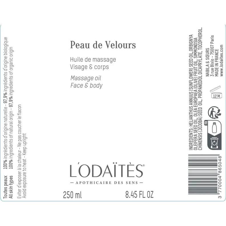 L'Odaïtès Peau de Velours Óleo de Massagem Rosto & Corpo é um produto projetado para oferecer uma experiência de hidratação e nutrição à pele. Sua formulação combina: