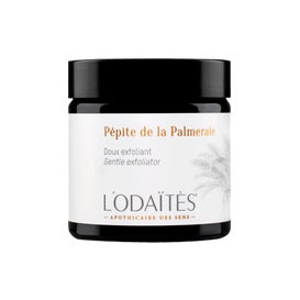 L'Odaïtès Pépite da Palmeraie Esfoliante Suave de 60 ml é um produto que ressalta as propriedades dos pós de semente de tâmara e folhas de oliveira. Esses ingredientes são ultrafinos e possuem um grande poder antioxidante. Ao se combinar com Aloe Vera e mel, que trazem qualidades hidratantes e calmantes, este esfoliante oferece uma experiência sensorial que resulta em uma ação dual suave.