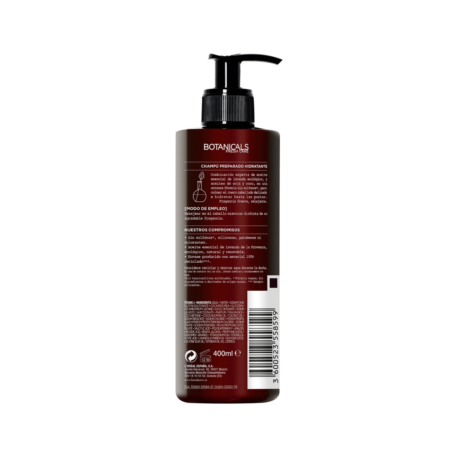 L'Oreal Botanicals Champô Lavanda Calmante 400ml é a solução natural ideal para acalmar e hidratar o cabelo delicado. Este champô, inspirado na botânica, utiliza óleo de lavanda de um monocultivo sustentável na Provença, oferecendo uma limpeza suave sem sulfatos, silicones, parabenos ou corantes.