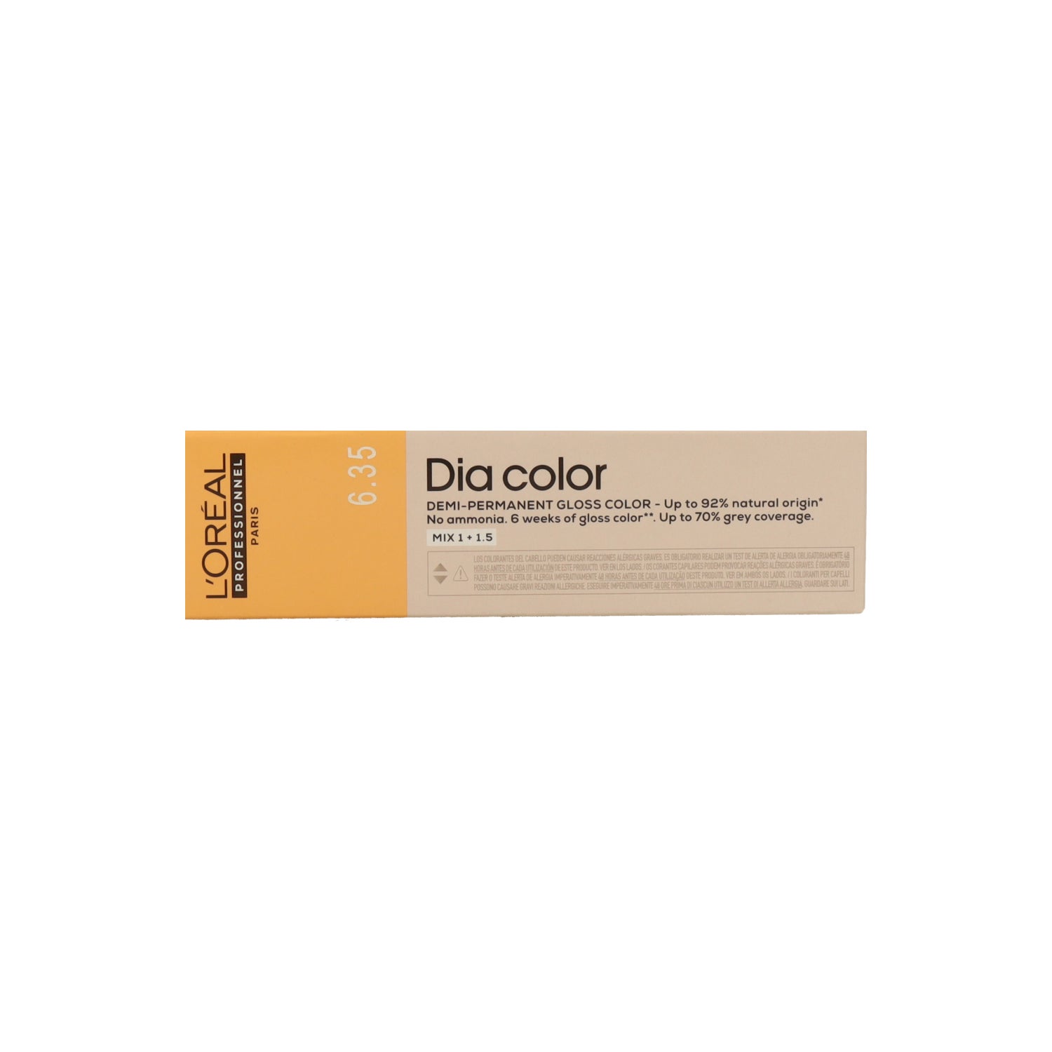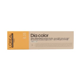 L'Oréal Dia Color 6.35 Loiro Escuro Dourado Mogno é uma coloração demi-permanente sem amônia que oferece um acabamento brilhante e natural. Esta fórmula alcalina permite obter uma cor do tipo gloss que dura até seis semanas, além de proporcionar uma cobertura de até 70% dos cabelos brancos.