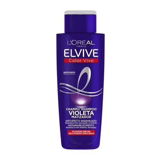 L'Oréal Elvive Color Live Violet Champô 200ml é um produto concebido para prevenir o alaranjado/amarelado em cabelos com madeixas, louros, descolorados ou grisalhos. A sua fórmula contém pigmentos violetas que neutralizam estas cores indesejadas, protegendo o cabelo com filtros UV e nutrindo-o. Graças a este champô matificante, a cor permanecerá intacta durante mais tempo.