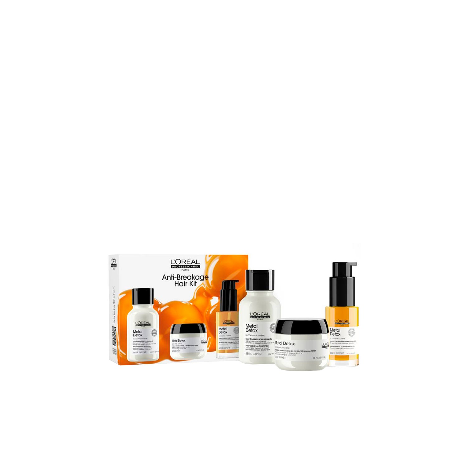 L'Oréal Metal Detox Mini Trio é um conjunto profissional projetado para o cuidado do cabelo após tratamentos de coloração, balayage ou descoloração. Este trio inclui: