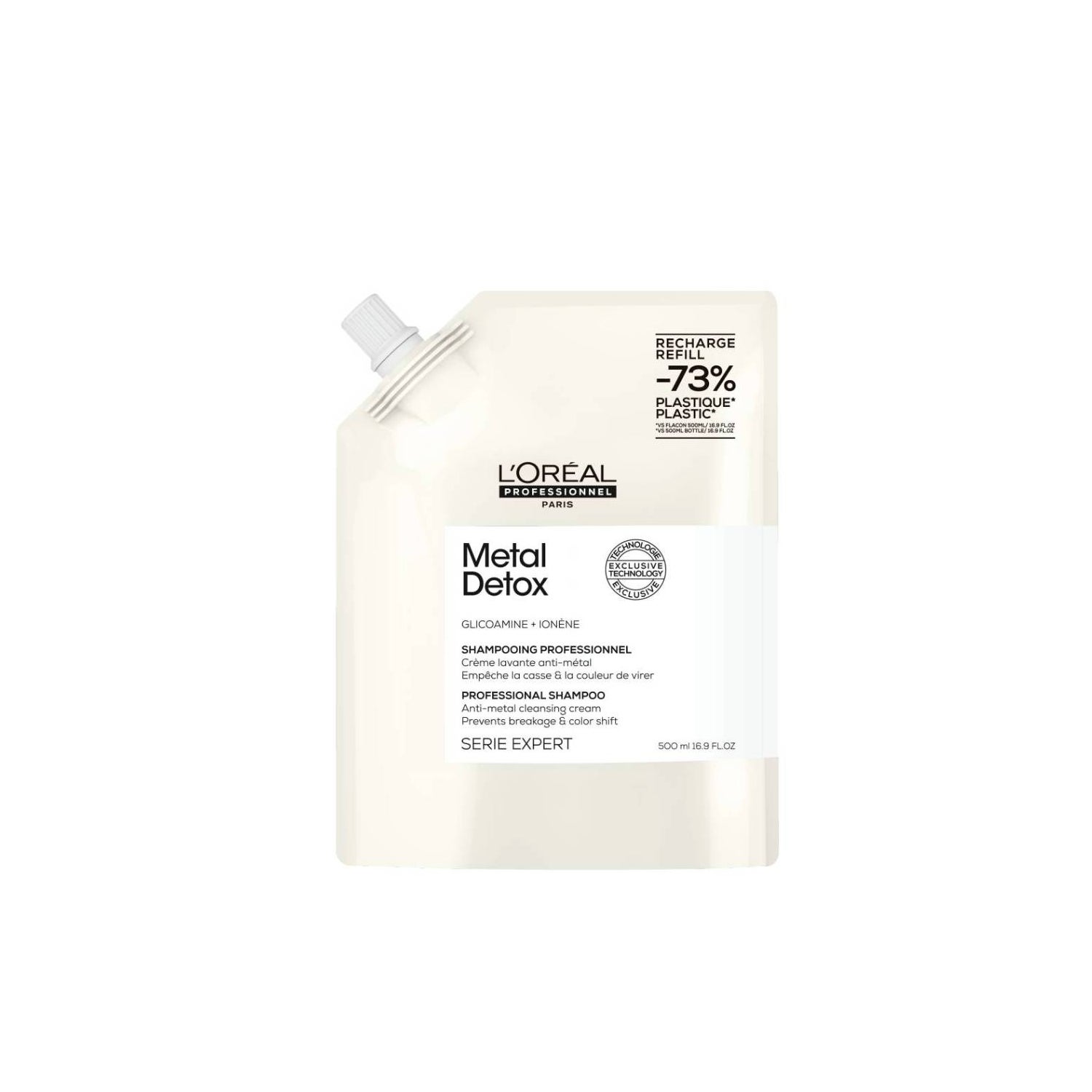 Shampoo L'Oréal Metal Detox para Cabelo Danificado Recarga 500ml é uma solução profissional projetada para proteger e revitalizar o cabelo danificado, especialmente após processos de coloração ou descoloração.