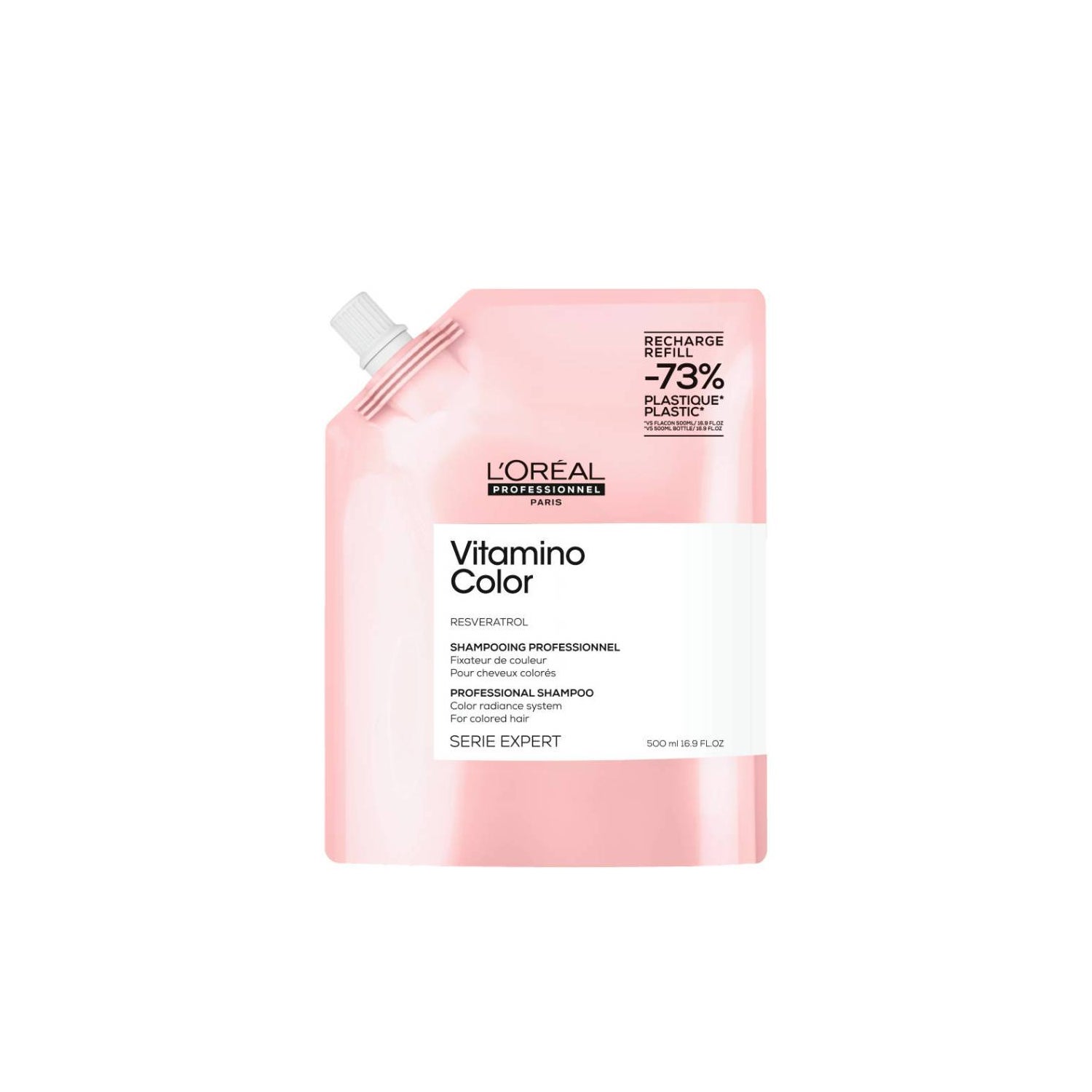 L'Oréal Vitamino Color Shampoo Recarga 500ml é um shampoo profissional projetado para o cuidado do cabelo tingido. Sua formulação protege e conserva a intensidade da cor por até 8 semanas, garantindo vitalidade e brilho desde o primeiro uso.