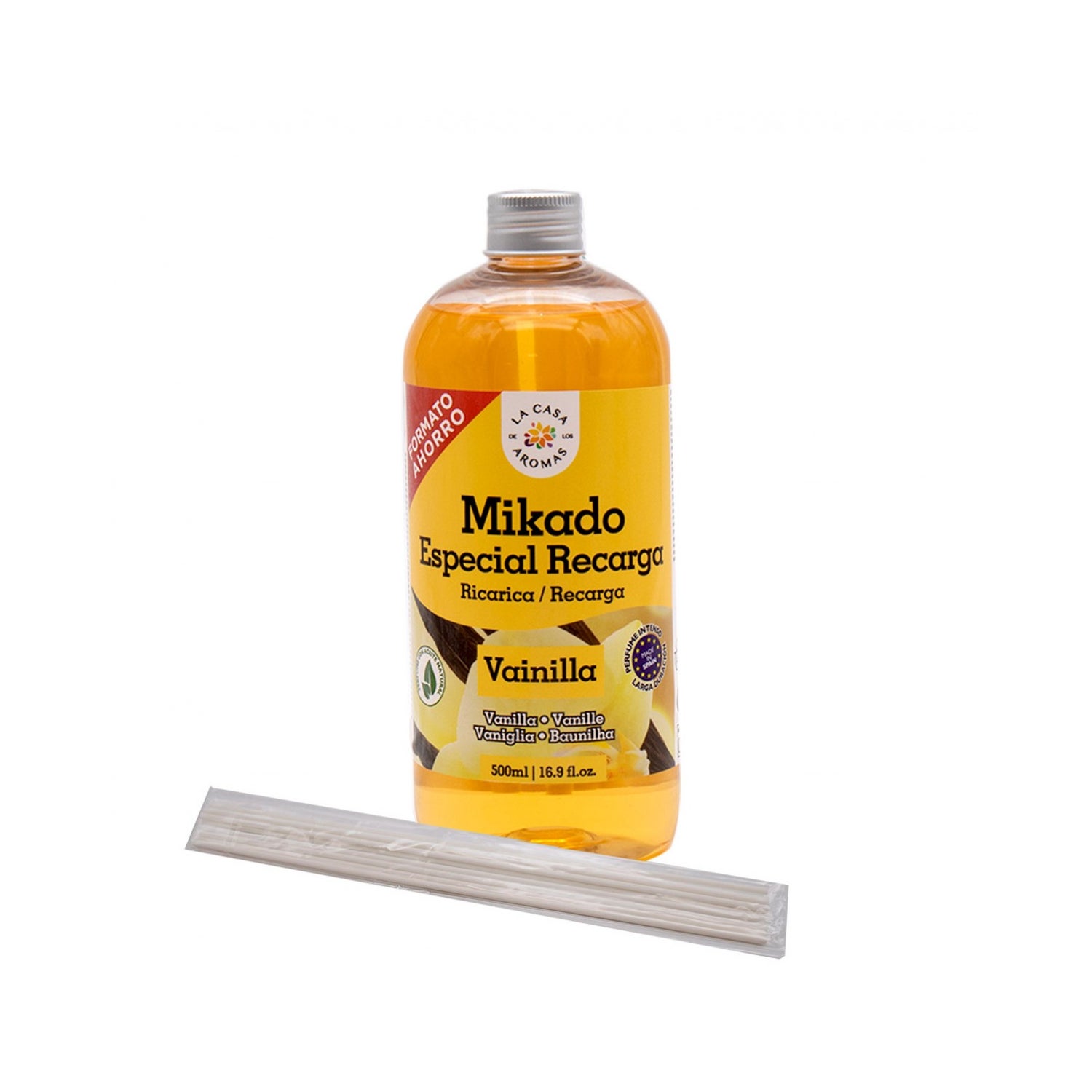 A Casa dos Aromas Mikado Recarga Baunilha 500ml é a opção perfeita para manter os espaços do lar perfumados com um doce e reconfortante aroma. Esta recarga, elaborada com óleos essenciais, oferece uma intensa fragrância de baunilha que transforma qualquer ambiente em um espaço acolhedor e agradável, ideal para o bem-estar diário da família.
