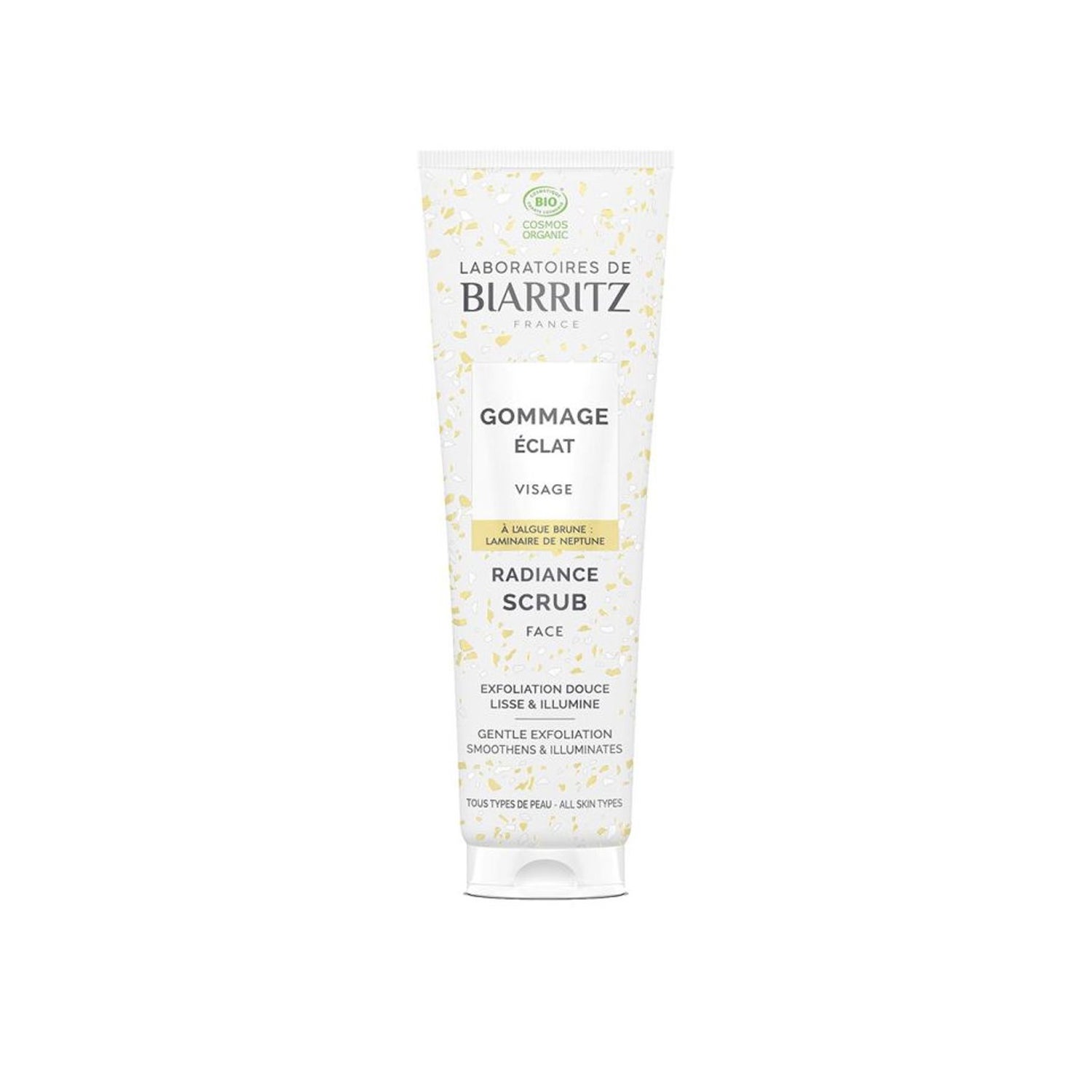 Esfoliante esfoliante feito de algas marinhas castanhas, jojoba, Aloé vera orgânico e casca de coco que ajuda a remover as células mortas da pele. A sua utilização favorece a renovação da epiderme e também previne a irritação e prurido cutâneo. Graças aos seus ingredientes, oferece uma grande hidratação que proporciona elasticidade e reduz o aparecimento de rugas.