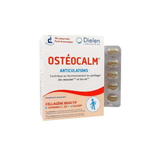 Ostéocalm Articulaciones 90 Comprimidos é um suplemento alimentar que contribui para o bom funcionamento das cartilagens, músculos e ossos. A sua fórmula à base de colagénio bioativo, um dos principais componentes das articulações e dos ossos, ajuda a reforçar a elasticidade e a flexibilidade das articulações. A vitamina C é essencial para a formação do colagénio. A vitamina D3 está envolvida na absorção do cálcio, ajudando a manter uma estrutura óssea normal. Por fim, o zinco é um oligoelemento essencial que ajuda a reduzir o risco de inflamação. Os suplementos alimentares nunca devem substituir uma dieta saudável e equilibrada.