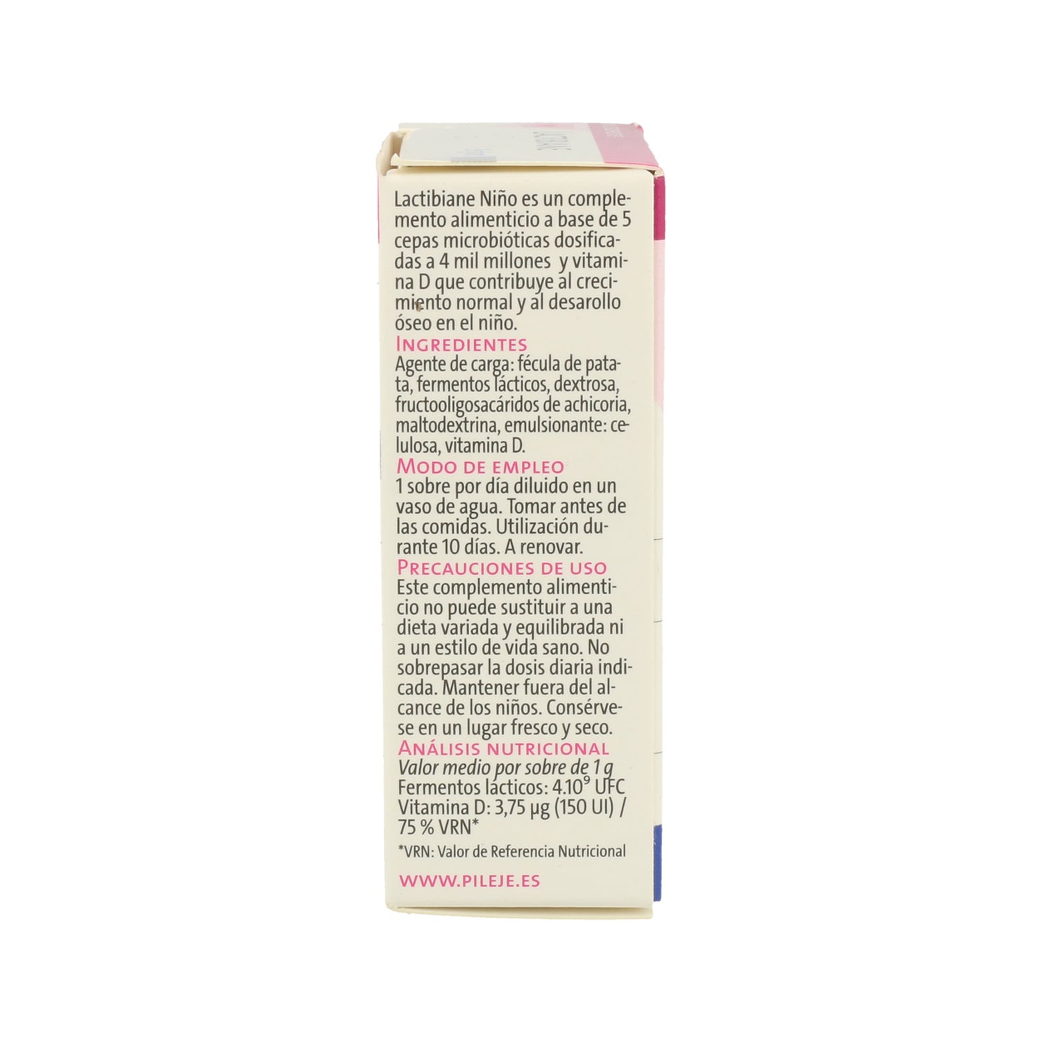 Um suplemento alimentar à base de 5 estirpes microbióticas: Bifidobacterium longum LA 101, Lactobacillus acidophilus LA 102, Lactococcus lactis LA 103, Streptococcus thermophilus LA 104, Lactobacillus rhamnosus GG LA 801... Formulado com Vitamina D, que contribui para o crescimento normal e desenvolvimento ósseo em bebés.