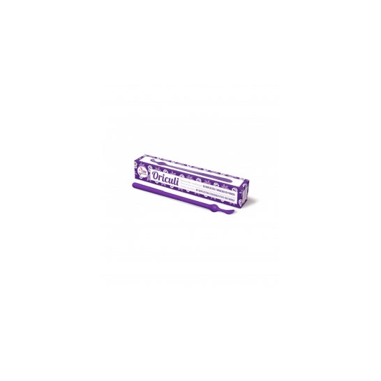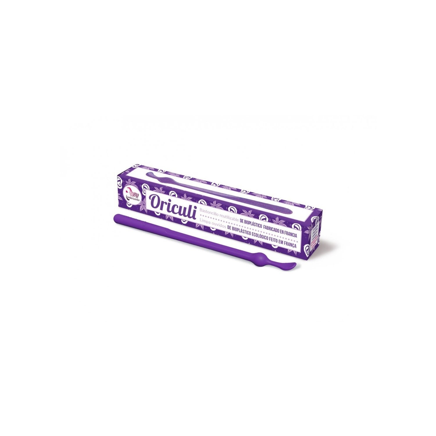 Hashtag roxo reutilizável para o ouvido Oriculi da Lamazuna. É feito de bioplástico 100% ecológico e muito resistente. Ajuda a prevenir a formação de rolos de cera. É mais econômico e sustentável. Use-o para eliminar a cera visível.