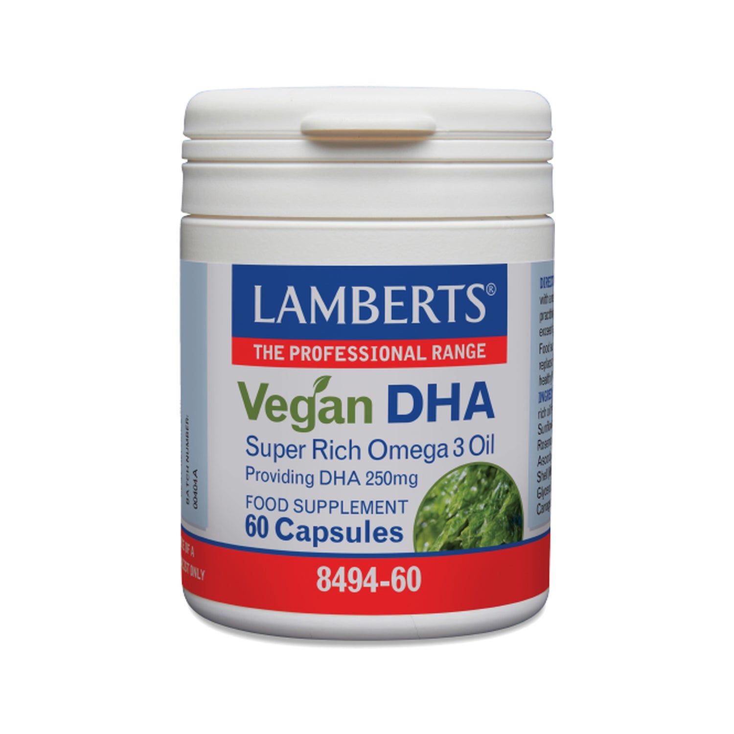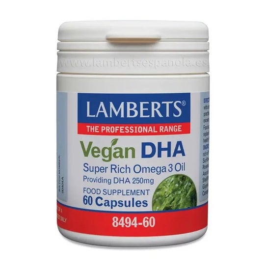 Lamberts vegan DHA 60 cápsulas de 250 mg é um suplemento nutricional especialmente concebido para pessoas que seguem dietas vegetarianas e veganas.