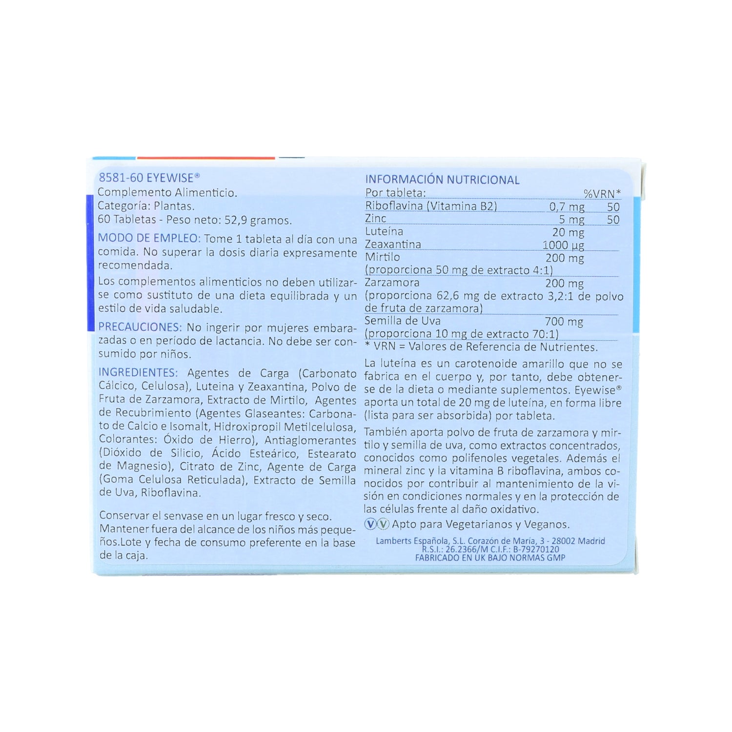 Lamberts Eyewise é um suplemento com luteína, zinco e vitamina B que ajuda a manter a visão normal, proteger as células de danos oxidativos e cuidar do estado dos vasos sanguíneos do olho.