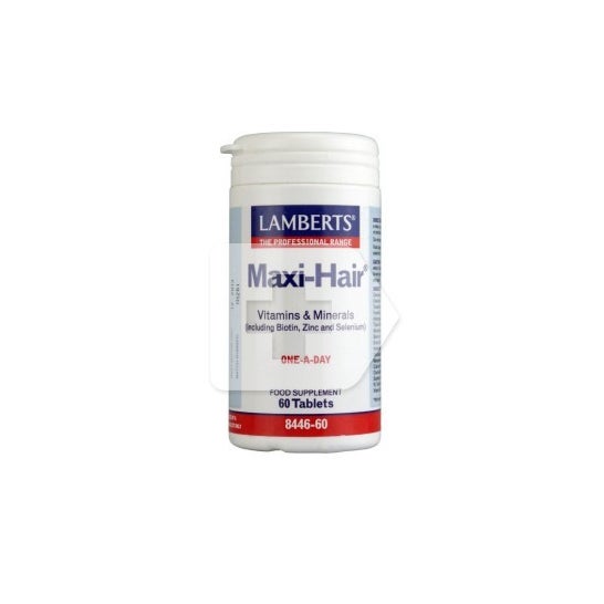 Lamberts Maxi-Hair é um suplemento nutricional especialmente formulado para combater problemas capilares, intensos ou leves. Repara o cabelo que sofre um desbaste extremo, nutrindo-o desde o interior para que recupere a sua espessura.
