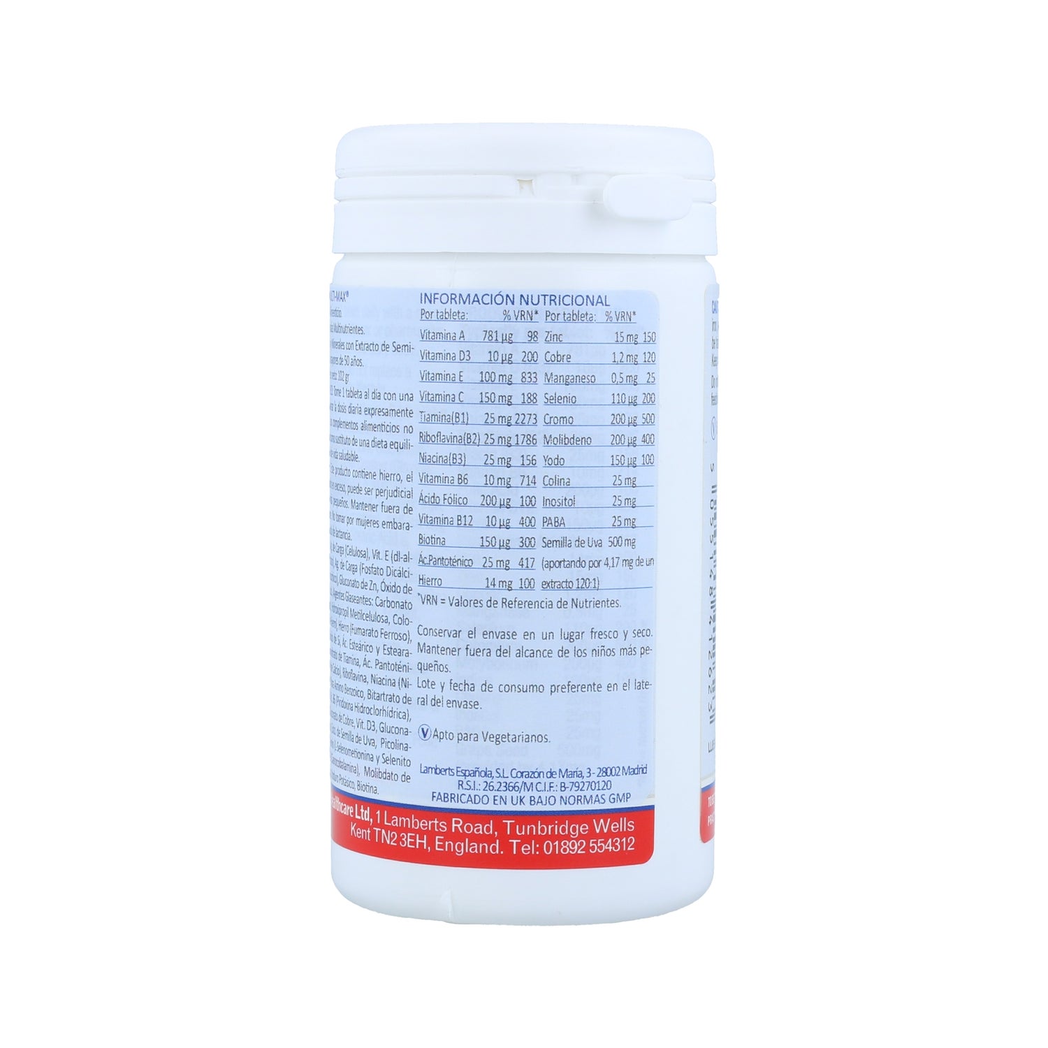 Suplemento alimentar em comprimidos, feito com um complexo de vitaminas e minerais, oligoelementos e antioxidantes de sementes de uva. Apoia o sistema imunitário do corpo, melhorando a energia do corpo. Graças à sua formulação, ajuda a reduzir o cansaço. Adequado para adultos mais velhos, em tempos de falta de vigor.