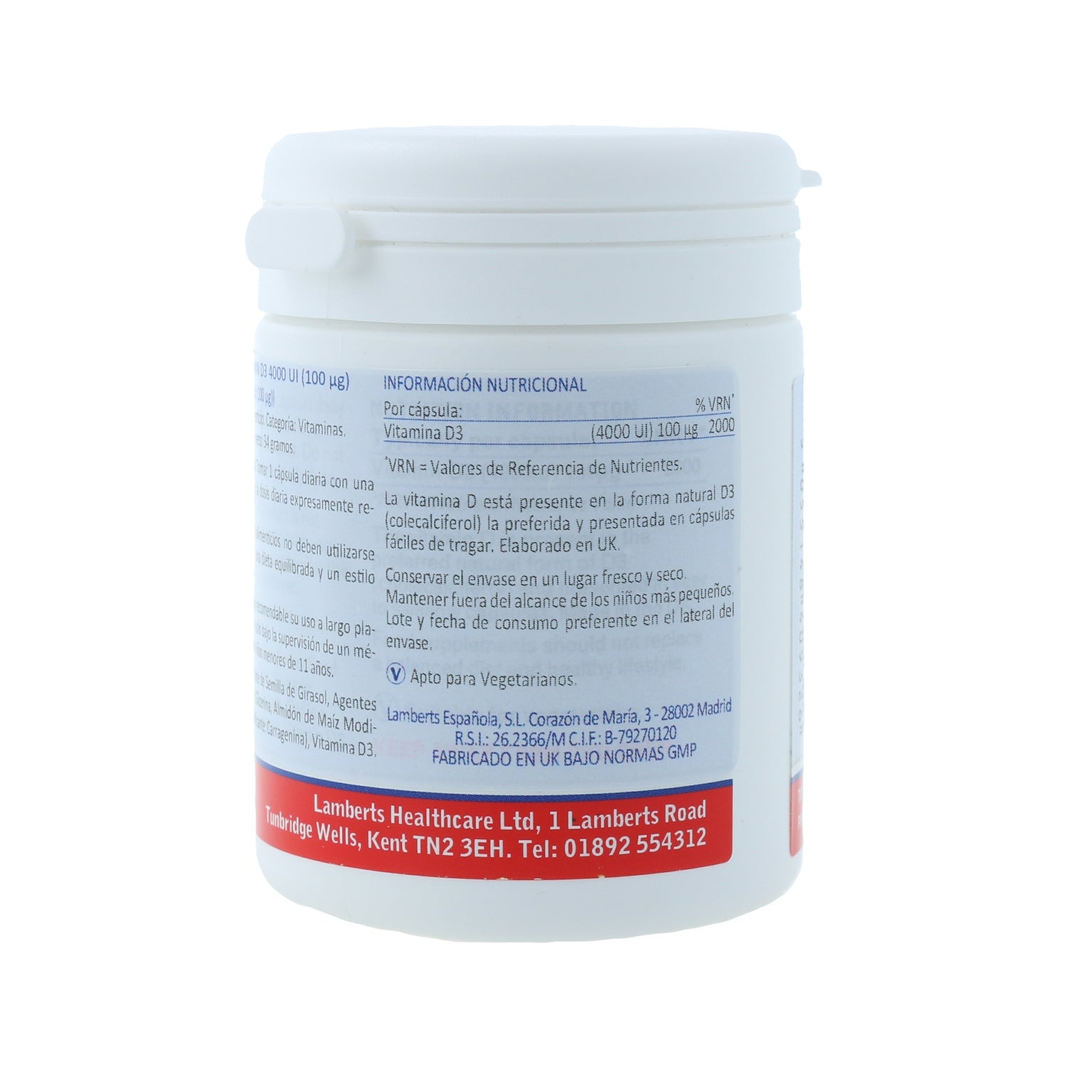 Lamberts Vitamina D3 4000 Ui 100µg 120comp é um suplemento alimentar à base de vitamina D3 que ajuda a manter um bom sistema imunológico, bem como uma boa saúde óssea e função muscular adequada
