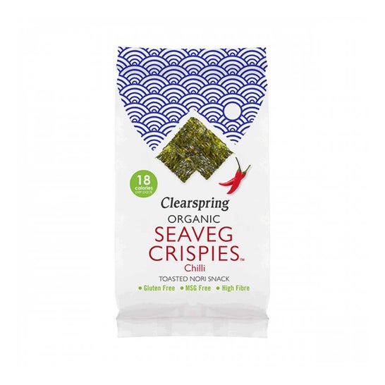 Snack feito com algas nori torradas picantes, 100% biológico. Contêm algas nori cultivadas nas águas cristalinas da costa da Coreia, sal marinho não refinado, óleo de girassol biológico e malagueta. Leves, finas e de textura estaladiça, foram cozidas durante alguns segundos para produzir este saboroso snack sem alterar as propriedades nutricionais. É uma fonte de proteínas e tem um baixo teor de gordura. Com ingredientes provenientes da agricultura biológica. Recomendado como aperitivo e snack saudável. Certificado como biológico, apto para vegans.