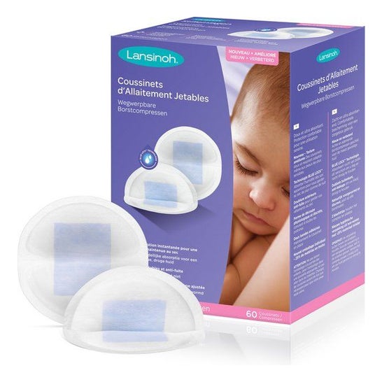 Almofadas Lansinoh Blue Lock, produto com design ultra absorvente, confortáveis e totalmente adaptadas para os seios. Mantêm secos a área dos seios durante a amamentação dia e noite e, portanto, também evitam as complicações que podem estar associadas ao contato úmido repetido.
