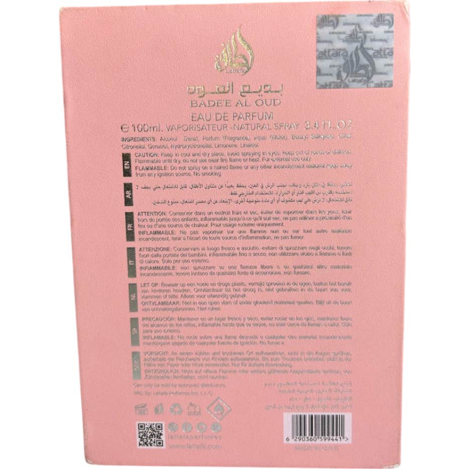 Lattafa Ladies Badee Al Oud Noble Blush 100 ml é um eau de parfum feminino da família olfativa floral frutal gourmand, pensado para momentos especiais. Oferece uma fragrância sofisticada e romântica, com um caráter doce e envolvente e um toque oriental gourmand de longa duração.