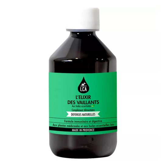 LCA L'Élixir des Vaillants 250ml é um suplemento alimentar à base de óleos essenciais biológicos (coentros, hortelã-pimenta, erva-limão) e plantas medicinais com propriedades anti-fadiga, o óleo essencial de coentros tem propriedades antioxidantes e reforça o sistema imunitário. Os suplementos alimentares nunca devem substituir um regime alimentar saudável, variado e equilibrado e um estilo de vida saudável.
