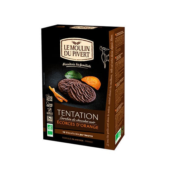 Le Moulin du Pivert Biscoitos Tentação Laranja Bio 130g são um lanche saudável e delicioso, ideal para qualquer momento do dia. Esses biscoitos combinam o sabor intenso do chocolate amargo com a frescura da laranja, em uma receita ecológica e sem ovo, adequada para uma alimentação consciente.