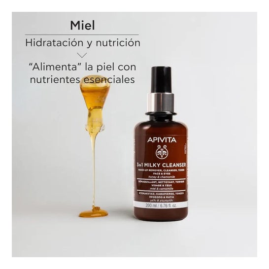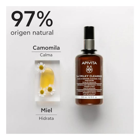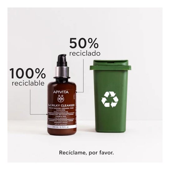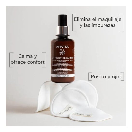 Apivita 3 Em 1 Leite de Limpeza é um leite de limpeza suave que ajuda a remover a maquiagem e as impurezas do rosto e dos olhos.