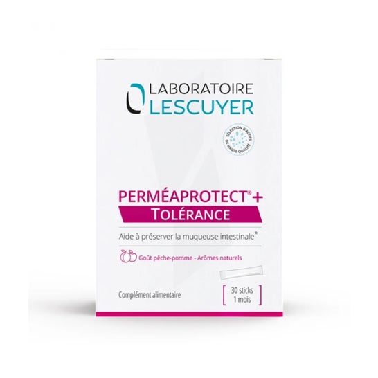 Lescuyer Perméaprotect+ Tolerância 30 Sticks é um complemento alimentar formulado para apoiar a barreira intestinal e favorecer uma melhor tolerância digestiva.