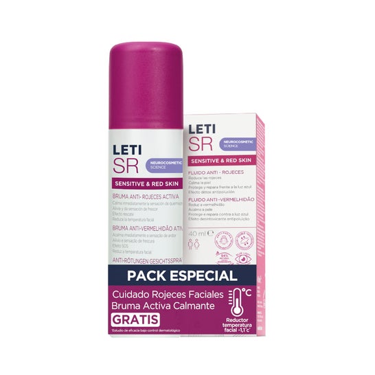 Leti SR Pack Especial Anti-Rougeur Fluido 40 ml + Bruma 75 ml é uma solução projetada para o cuidado da pele, especialmente indicada para aqueles que apresentam sensibilidade ou tendência a vermelhidões.