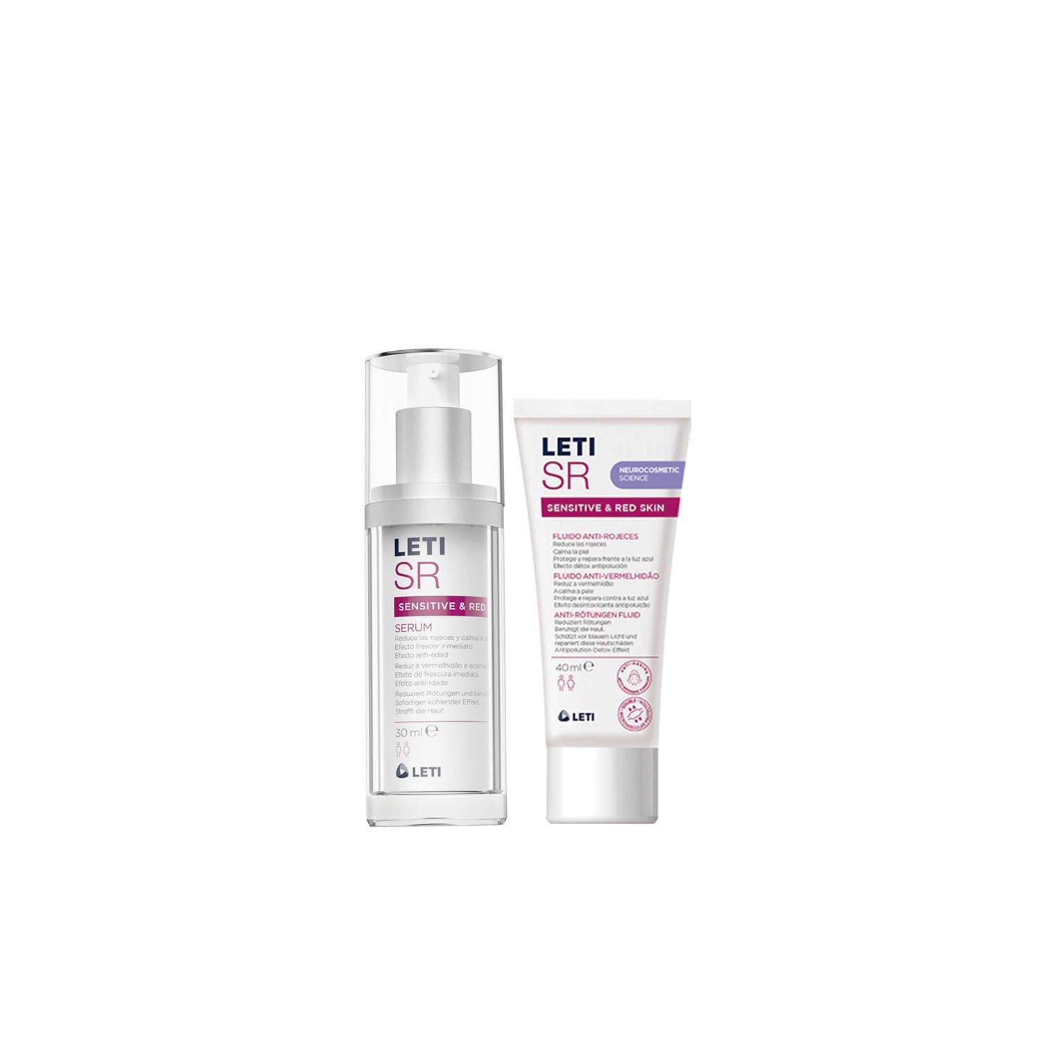 Leti Sr Sérum Antivermelhidão 30ml + Fluido Antivermelhidão 40ml é um conjunto projetado para o cuidado da pele sensible que apresenta vermelhidão. Este pack inclui um sérum e um fluido, ambos formulados para proporcionar alívio e conforto à pele.