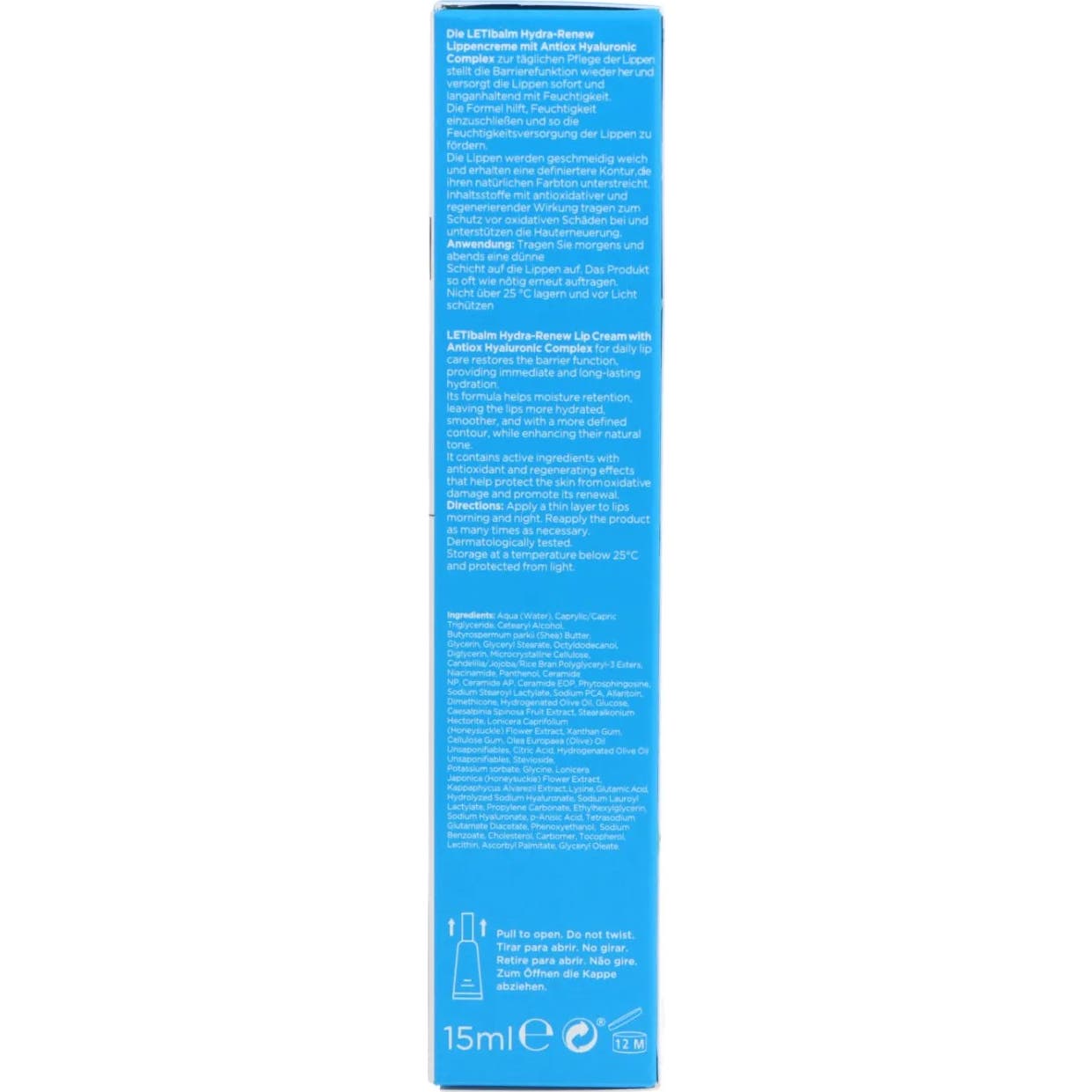 Hidratação celular ativa para o cuidado diário dos lábios. Hidratação celular ativa que proporciona uma hidratação imediata e duradoura. Restaura a função barreira da pele reduzindo a perda transepidérmica de água (TEWL).