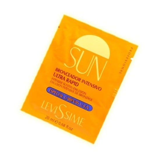 Loção bronzeadora intensiva com efeito ultra-rápido por Levissime. Produto formulado para facilitar a protecção e melhoria do bronzeado, graças à hidratação e regeneração da pele. O resultado é uma aparência intensa e sublimada das primeiras aplicações. Acelera o processo de melanogénese, sem danificar a pele. Produto sem protector solar, use com cuidado.