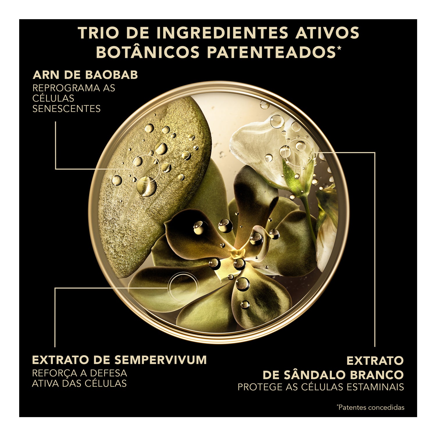 Formulada com extrato de sândalo branco, extrato de sempre-viva e ARN de baobá.