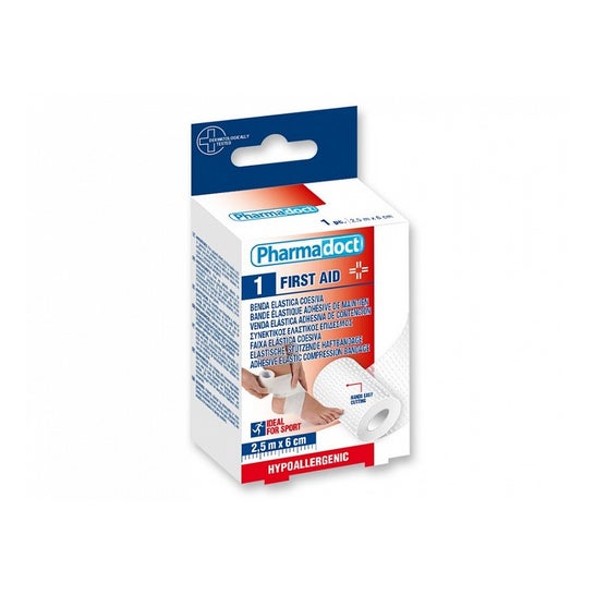 Ligadura elástica compressiva com uma superfície adesiva que lhe permite aderir à sua superfície, mas que não adere à pele nem ao cabelo. Ajuda a fornecer apoio muscular e contenção. É feito de tecido hipoalergênico, por isso é adequado para todos os tipos de pele, mesmo peles sensíveis.