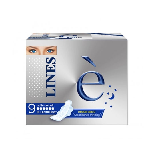 Compresas Lines E Noche 9uds são compresas projetadas para oferecer conforto e discrição durante a noite. Essas compresas são fabricadas com o inovador material hipoalergênico lactifless, que se adapta ao corpo feminino.