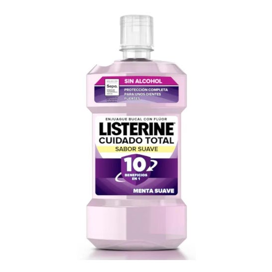 Listerine Total Care Colutório Sabor Suave 500ml é um colutório que oferece uma limpeza e proteção completas, graças aos seus 6 benefícios, para uma higiene oral total. Este colutório reduz a placa dentária, ajuda a manter as gengivas saudáveis, protege os dentes contra as cáries graças ao flúor, ajuda a prevenir o tártaro para preservar o branco natural dos dentes e combate os germes que causam a placa dentária, bem como a gengivite. Para adultos e crianças com mais de 12 anos de idade. Contém fluoreto de sódio 220 ppm F. Dispositivo mediacl com sabor a menta suave. Sem álcool.