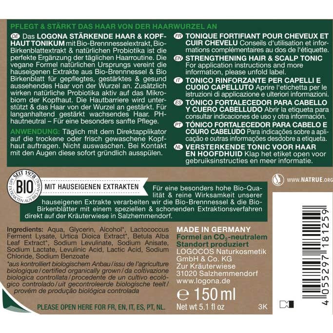 - Extratos de urtiga e bétula, provenientes de agricultura ecológica, garantindo a qualidade e pureza de seus componentes.