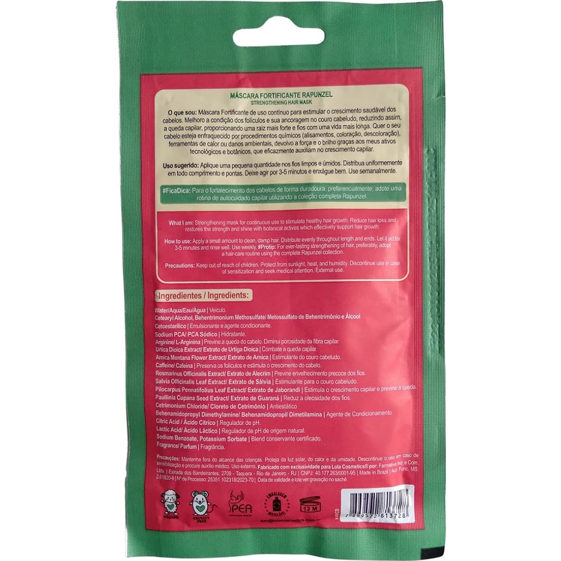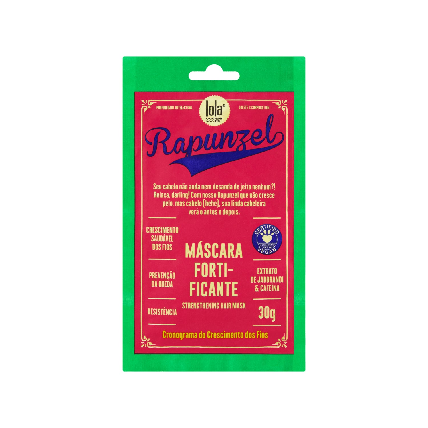 Lola Cosmetics Rapunzel Máscara Fortificante 30g é um tratamento projetado para uso contínuo, voltado a promover o crescimento saudável do cabelo. Esta máscara tem como objetivo melhorar a saúde dos folículos capilares e sua fixação no couro cabeludo, o que contribui para diminuir a queda de cabelo e a fortalecer as raízes.