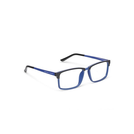 Óculos para presbiopia com uma dioptria de +2,50 com armação retangular em policarbonato preto e azul elétrico. Melhoram a focagem e a nitidez da visão dos objectos a curta distância. São igualmente adequados para a visão de perto ou em caso de fadiga ocular. Adequados para adultos.