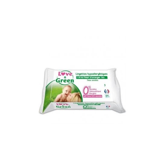 INFORMAÇÕESAs toalhitas hipoalergénicas Love & Green são : - Sem conservantes suspeitos de serem desreguladores endócrinos - 0% parabenos, fenoxietanol, alergénios*, EDTA, DMDM, corantes, cloro, PEG - Biodegradáveis e compostáveis: Fabricado a partir de fibras 100% naturais certificadas FSC® (ou seja, provenientes de florestas geridas de forma responsável) e TCF (sem cloro) - Impregnado com uma loção 98% natural à base de flor de laranjeira biológica, reconhecida pelas suas propriedades calmantes - Hipoalergénico e dermatologicamente testado - Fabricado em França.