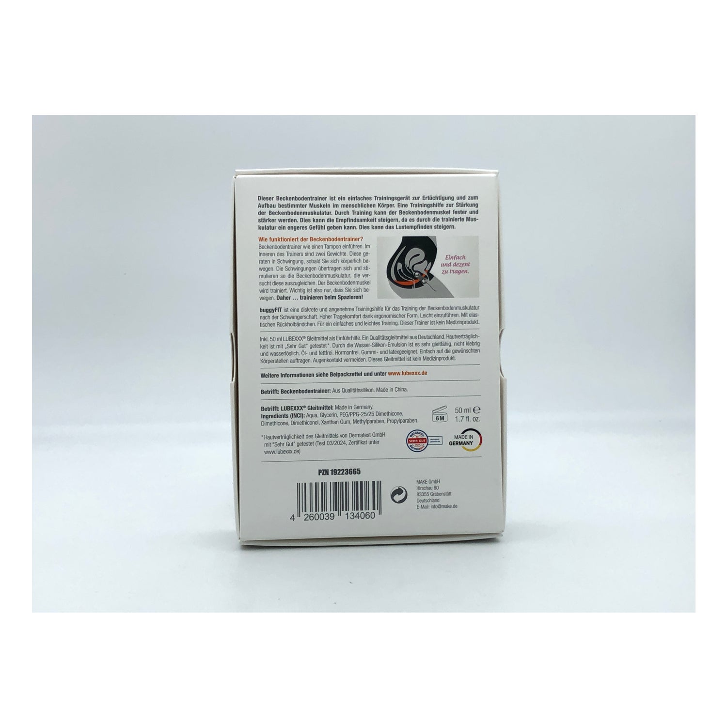 Unidade de embalagem - incluída no conjunto: ✔ Dispositivo de treino com um peso de aprox. 58g ✔ 50ml de lubrificante LUBEXXX Original como auxiliar de inserção adicional ✔ FolhetoInformações sobre o treinador O treinador do pavimento pélvico é feito de silicone de alta qualidade e é confortável de usar. A sua forma ergonómica torna-o particularmente fácil de inserir.