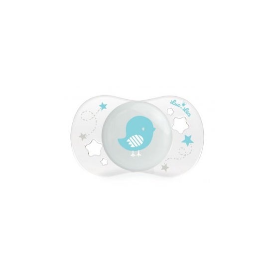 Chupeta com design turquesa especialmente concebida para satisfazer as necessidades de sucção dos bebés dos 0 aos 2 meses, para ajudar a acalmá-los e acalmá-los. Tem uma tetina de silicone anatómica que se adapta ao palato do bebé e respeita o desenvolvimento das gengivas e dos dentes.
