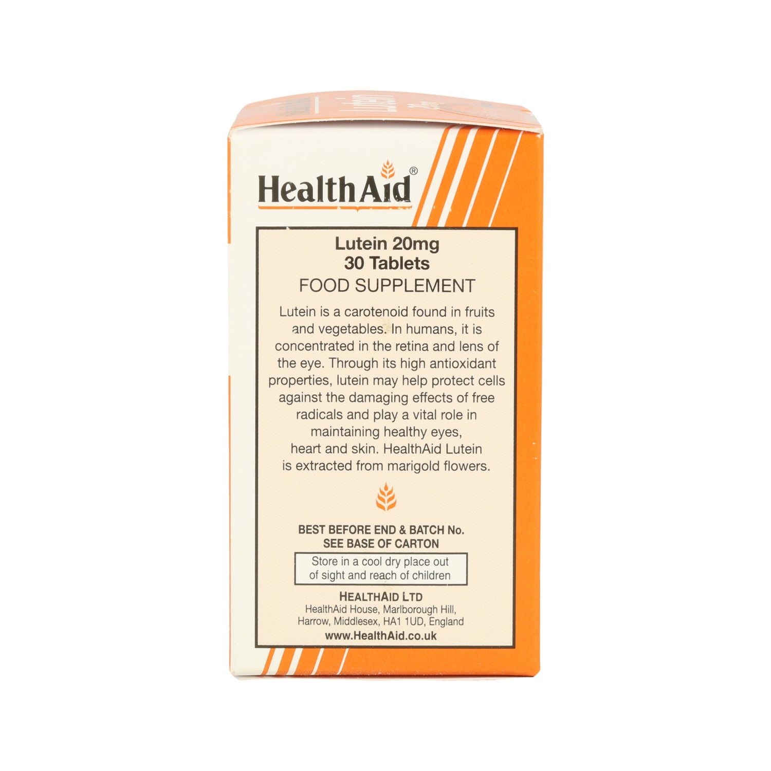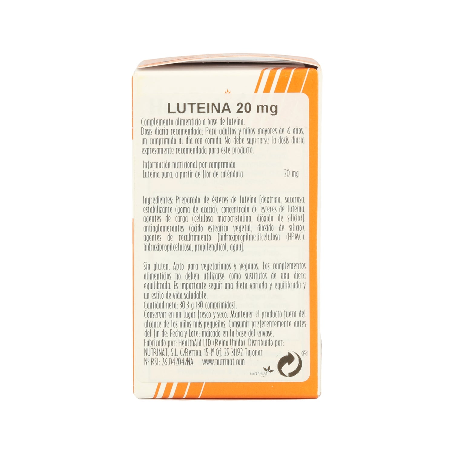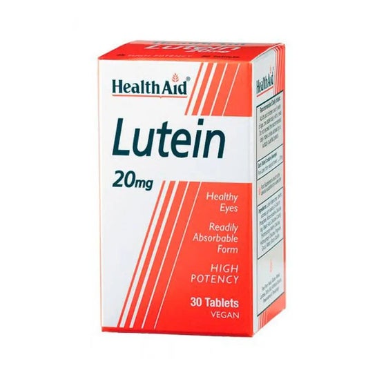 Suplemento alimentar em comprimidos à base de luteína extraída das flores de calêndula. A luteína é uma substância pertencente à família dos carotenóides e possui propriedades altamente antioxidantes, que ajudam a proteger o organismo dos ataques dos radicais livres.