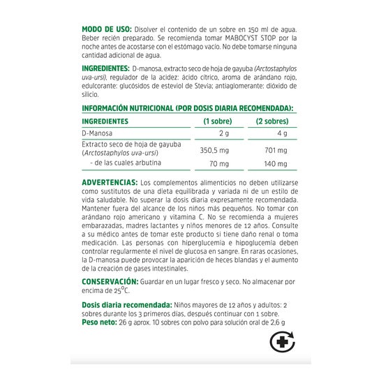 Contém 2 g de D-manoza por envelope. Contém extrato de gayuba padronizado em arbutina.