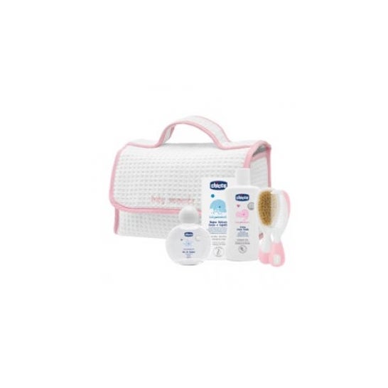 O Necessaire de Beleza Rosa da Chicco Cosm Beauty é um necessaire de algodão com alça e bolsos internos, ideal para o cuidado e higiene diária do teu bebê durante e após o banho.