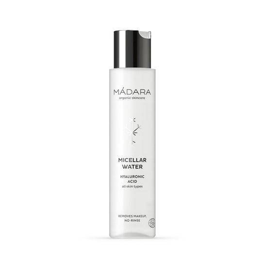 Água micelar adequada para uso diário em todos os tipos de pele, feita com ácido hialurónico. A sua eficácia 3-em-1 ajuda a limpar, remover a maquilhagem e tonificar no mesmo passo. Proporciona frescura e suaviza a pele, removendo eficazmente todos os tipos de maquilhagem e impurezas depositadas sobre a pele. Também contém Aloe vera, que ajuda a hidratar a derme.
