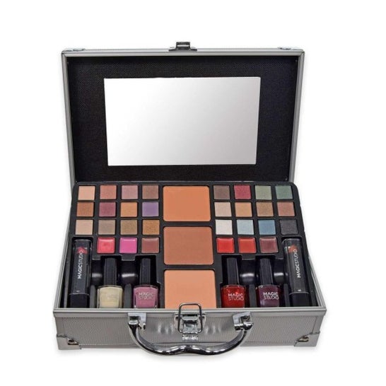 Mala de maquilhagem com produtos de alta qualidade que lhe permitem criar uma multiplicidade de visuais com acabamentos profissionais. Especialmente concebido para trabalhos fáceis fora do salão. Ideal para viagens. Este conjunto contém: